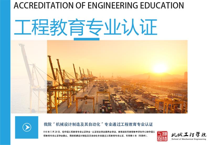 2018年5月28日,经中国工程教育专业认证协会-认证结论审议委员会审议,教育部高等教育教学评估中心和中国工程教育专业认证协会确认,我校机械设计制造及其自动化专业通过工程教育专业认证,有效期6年(有条件)。